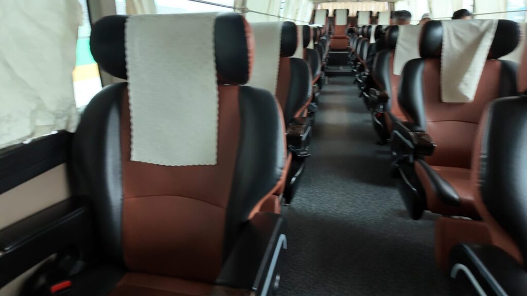 - 種類によっては3列のゆったりシート、フットレストもあります