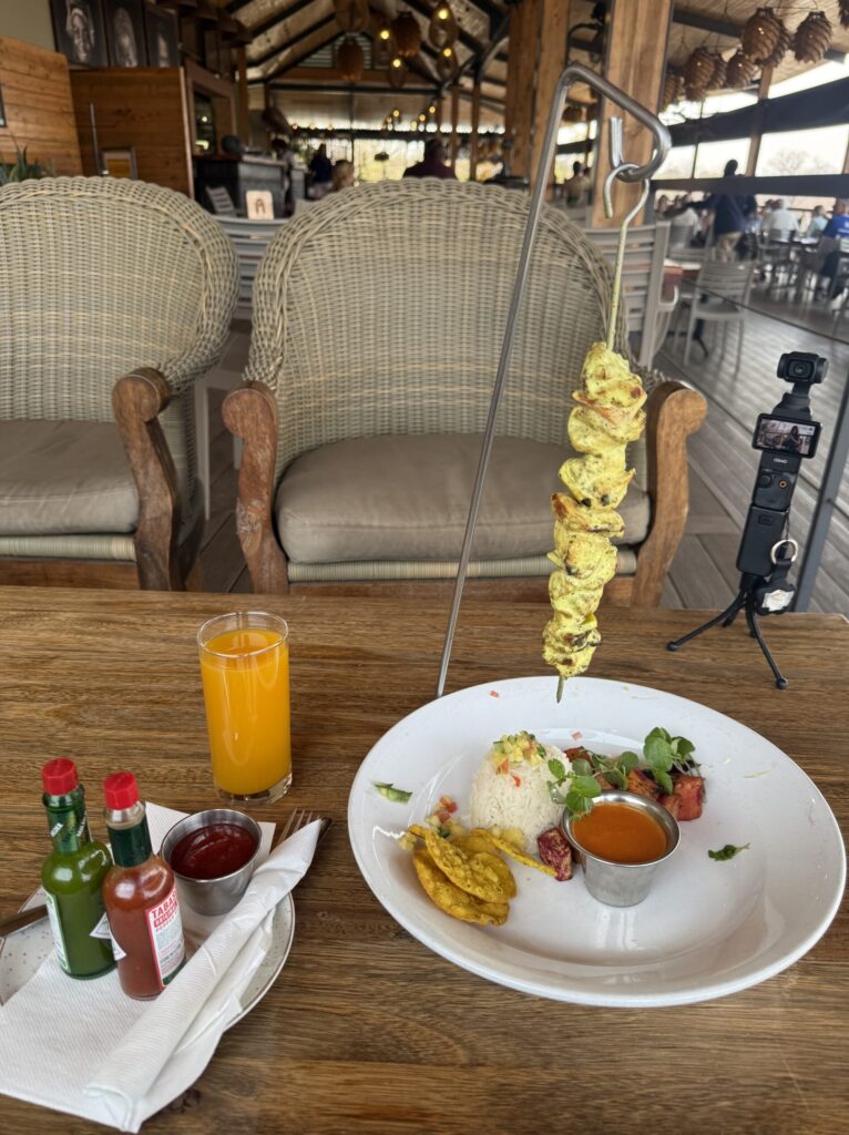 ・入国後、まずは腹ごしらえ。滝近くのThe Lookout Cafeで眺めを楽しみつつワニケバブとマンゴージュース。